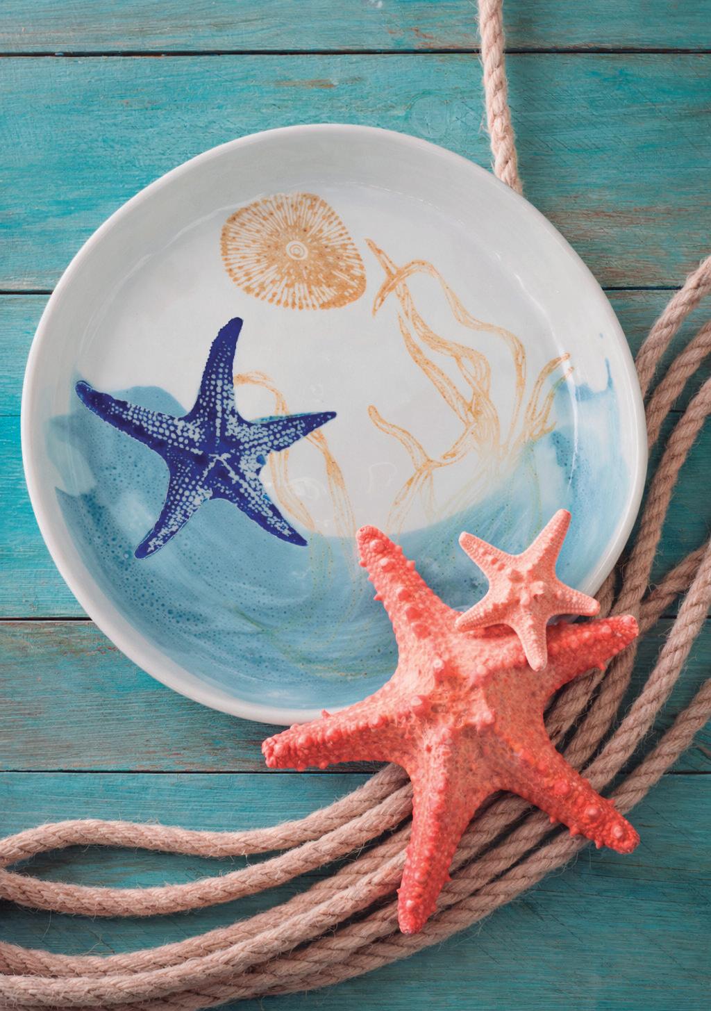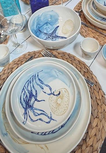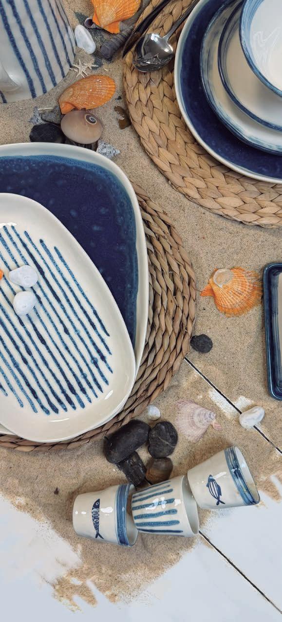 Uma coleção que celebra o mar como memória e inspiração. Ilustrações delicadas ganham vida sobre formas orgânicas e tons aquáticos, criando peças que contam histórias à mesa — entre natureza, tradição e design contemporâneo.
