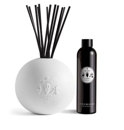 A sculpted porcelain orb with perfumed oil emanates continuous fragrance. The fragrance evokes a walk on a wet forest floor, with notes of wild Italian bergamot, tobacco jasmine and spice. It comes presented in a luxury gift box.