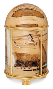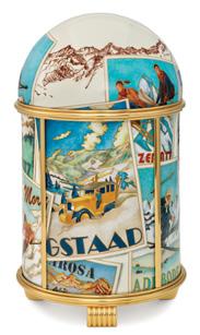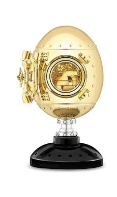 Celebrating the 60th anniversary of Goldfinger, this limited edition egg objet in 18k yellow gold reveals miniature gold bars and 140 yellow diamonds. Inspired by Fort Knox, the unique mechanism embodies Fabergé’s craftsmanship and the film’s legendary obsession with gold.