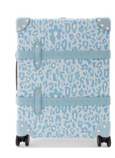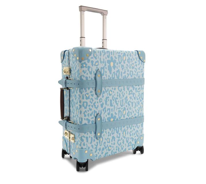 This bold blue carry-on fuses Globe-Trotter craftsmanship with Tyler, The Creator’s vibrant vision. Lightweight yet durable, it features leather details, polished hardware, and a camo-inspired print woven with GOLF le FLEUR* wordmarks, redefining individuality in travel.