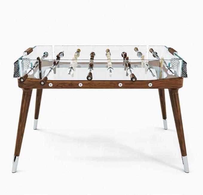 The Teckell 90° Minuto Wenge foosball table is a luxury lifestyle piece combining Canaletto walnut, ash wood, and crystal glass. With handcrafted players, stainless steel goals, and chromed telescopic bars, it merges Italian craftsmanship with durability, sophistication, and cutting-edge design.