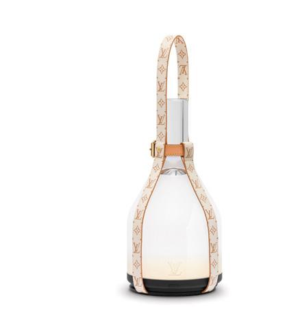 Part of Objets Nomades, the Bell Lamp pairs frosted glass with a Monogram canvas strap. Featuring a dimmable LED light lasting 30 hours, it is a nomadic accessory designed to bring soft, portable elegance to any environment.