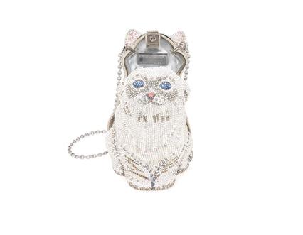 The Judith Leiber Kitten Cloud cat-shaped clutch is a tiny, purring declaration of whimsical style. Designed as a white kitten, it sparkles under a galaxy of silver crystals, while opal-blue eyes and a pretty pink nose add an unexpected dash of personality. Gray crystal accents sculpt a sense of fluffiness so tactile you almost want to cuddle it. judithleiber.com