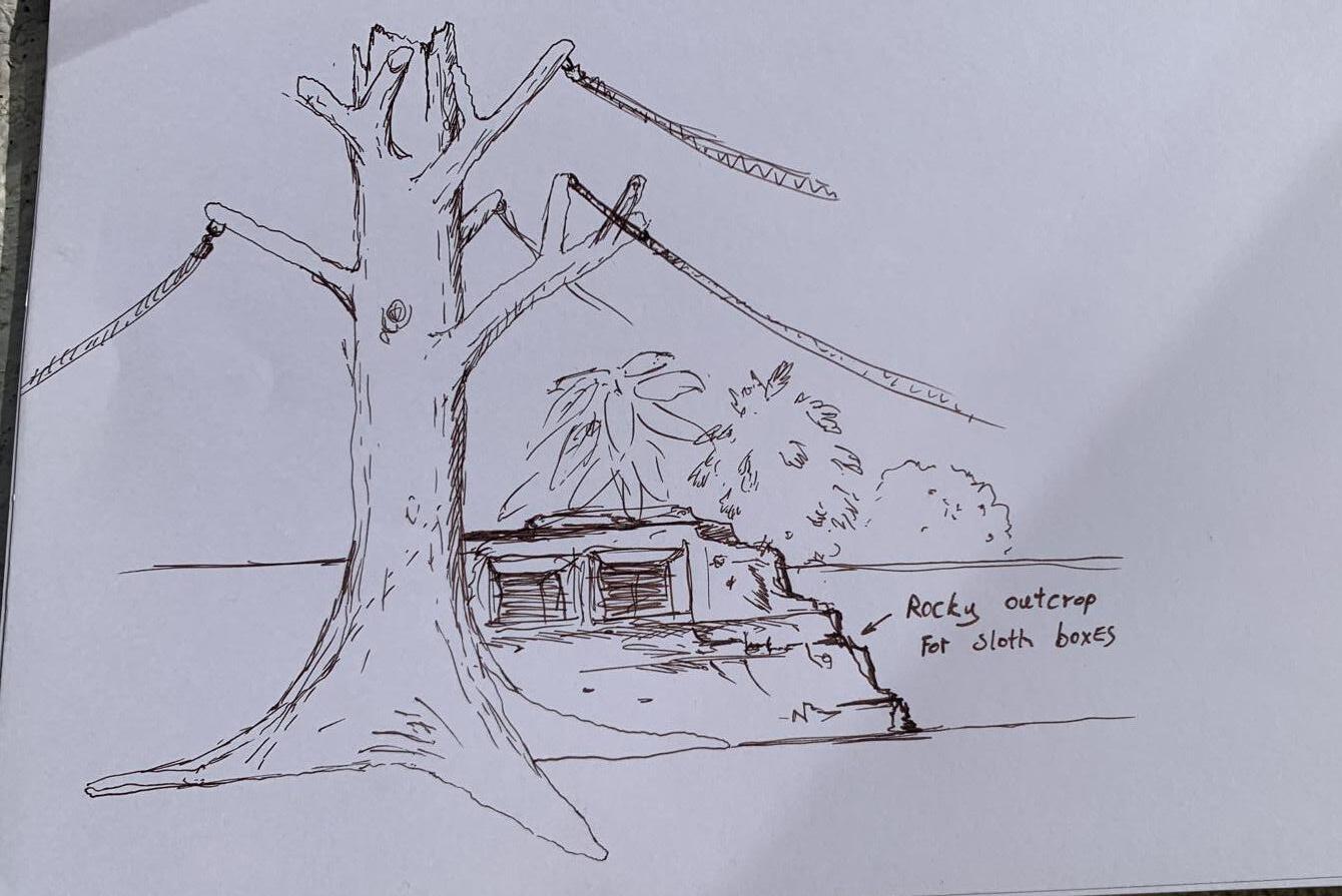 In preparation for the arrival of Linne’s two-toed sloths, Terry and Rio, in November 2022, Zooscapes designer Darren Norbert made them a new luxurious new home. Darren has previously applied his outstanding skills to a wide variety of design challenges, including the sets of famous TV shows. The sloths’ one-of-a-kind enclosure, based in the Cloud Forest at Jersey Zoo, includes underfloor heating and Darren’s feature tree in the middle. The tree has builtin hoops for rope bridges and realistic rough bark to mimic trees found in South America.
