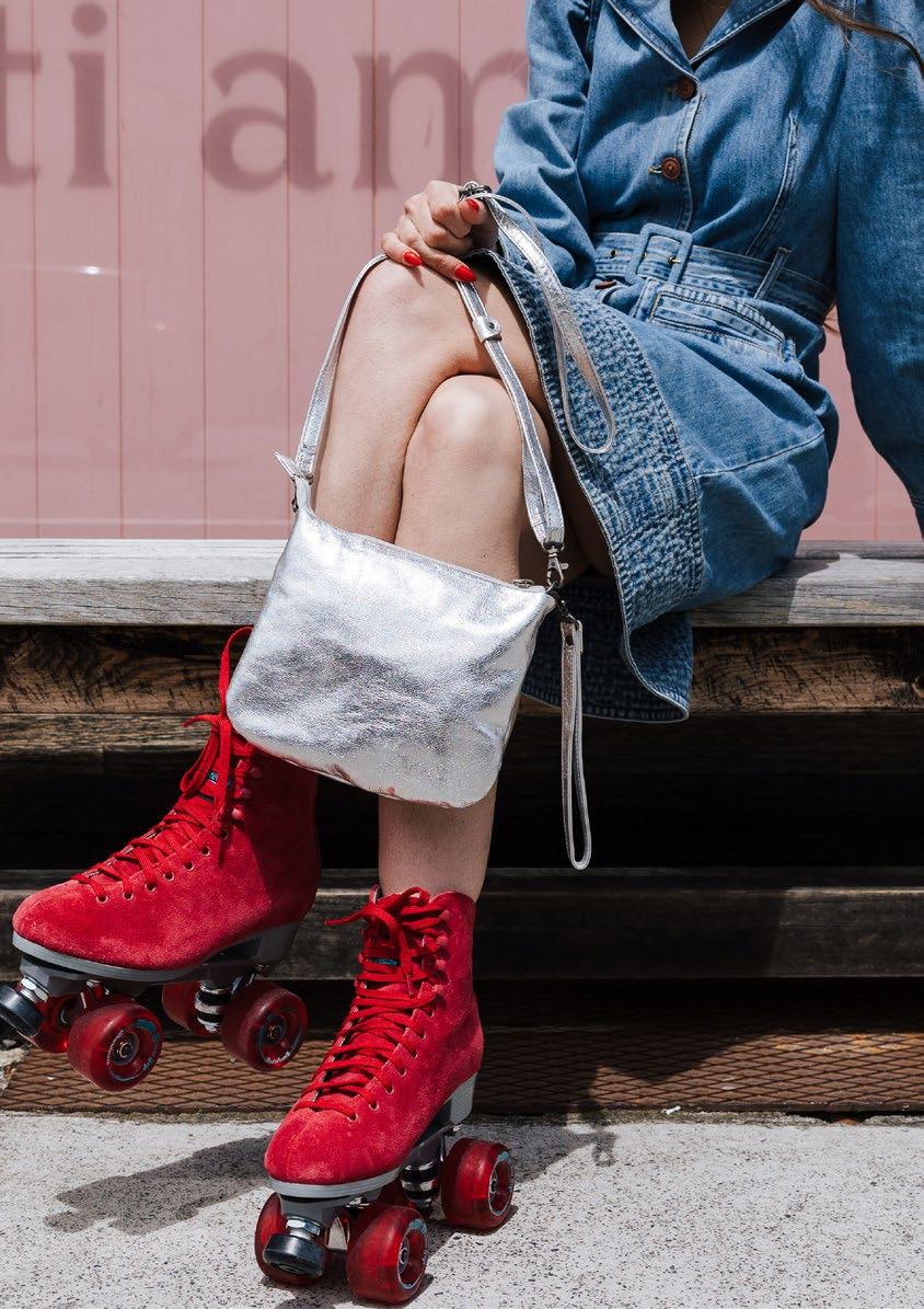 Available in tan, black, olive, brown, navy, steel grey, dusky pink + silver.