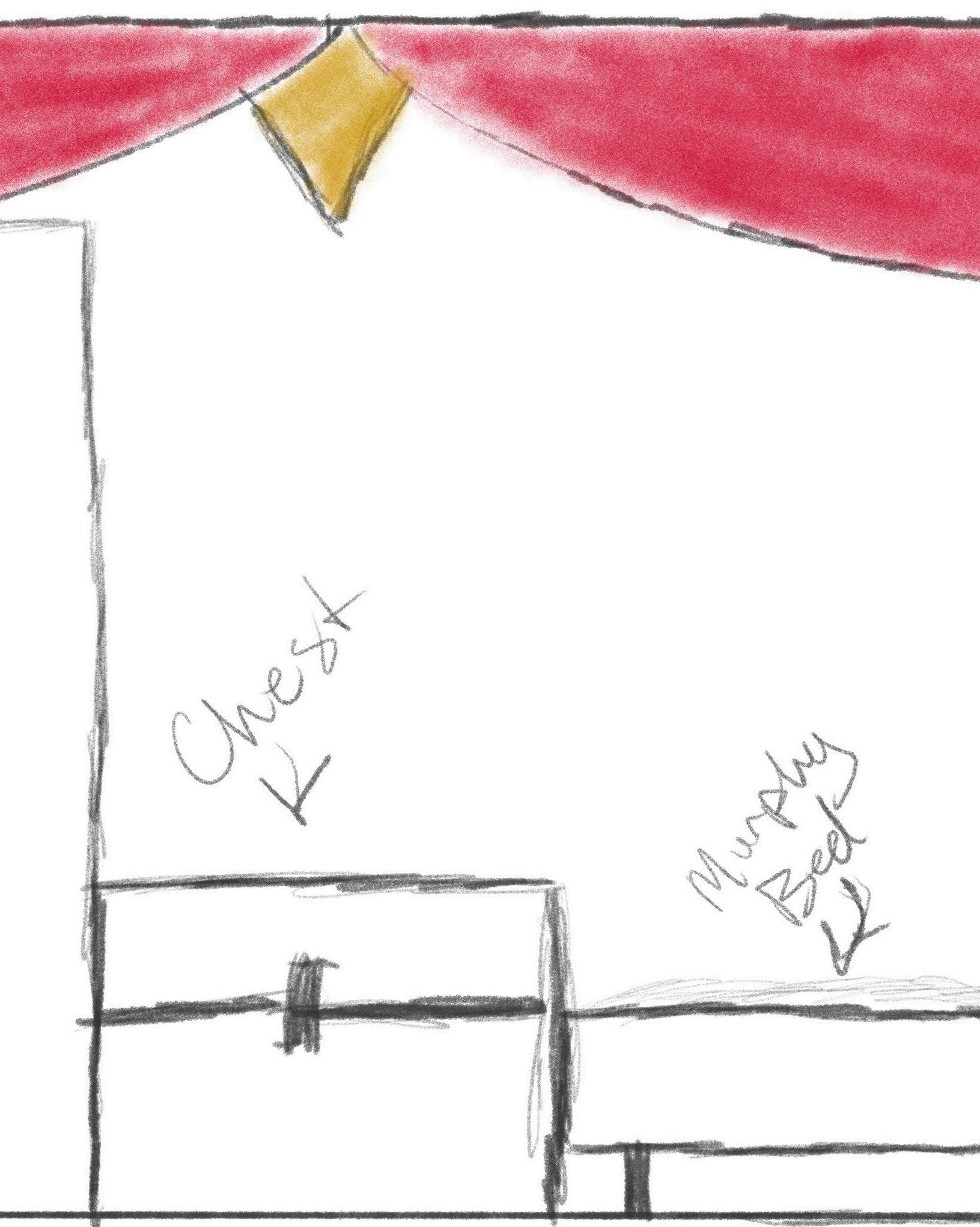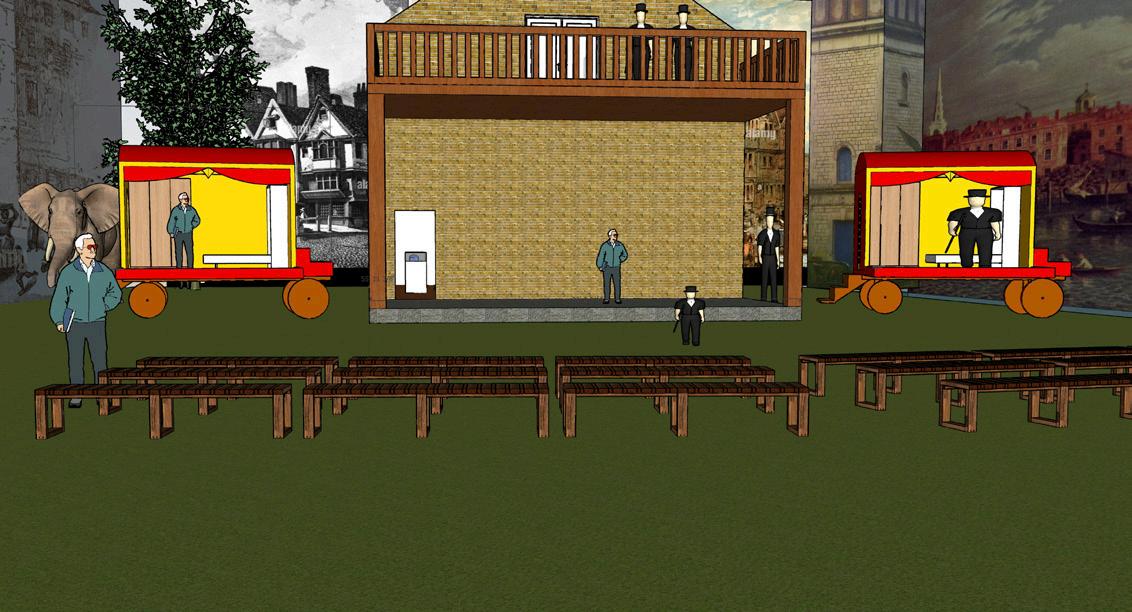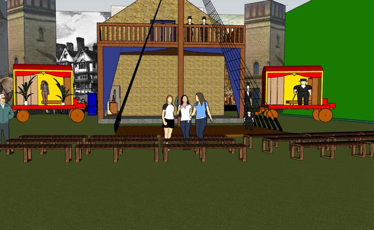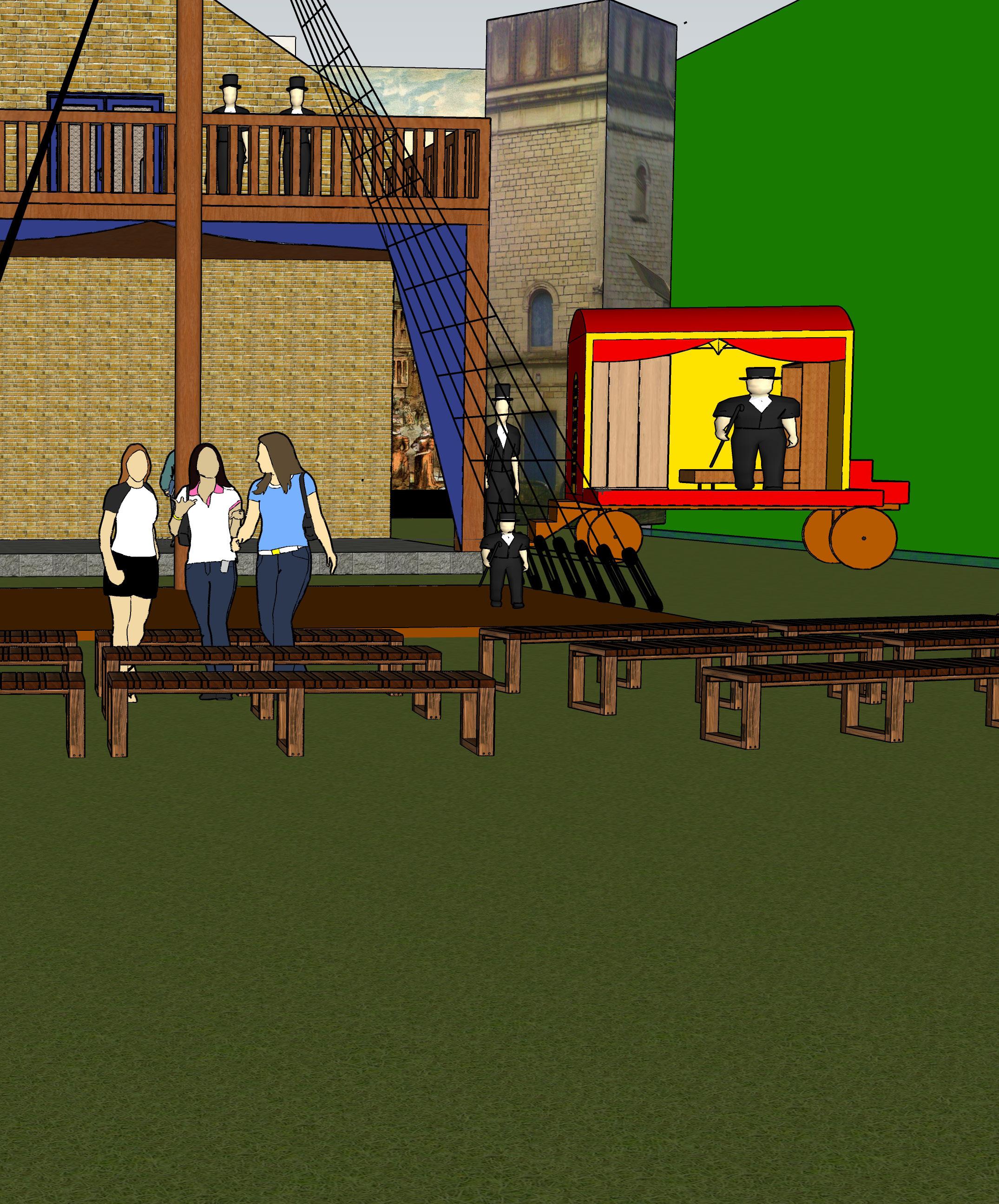 The wagon represents the main living and working space for the traveling performers Shakespeare gathering in. He uses these spaces to expand his stage to a bigger area than his small stage built on the back of the museum. During my design process I envisioned these to look more like a Gypsy wagon than the actual traveling performing acts to the time. This was to represent the uniqueness of the performers, and to represent how they do not fit in with the society of the time, that we were considered outcasts.