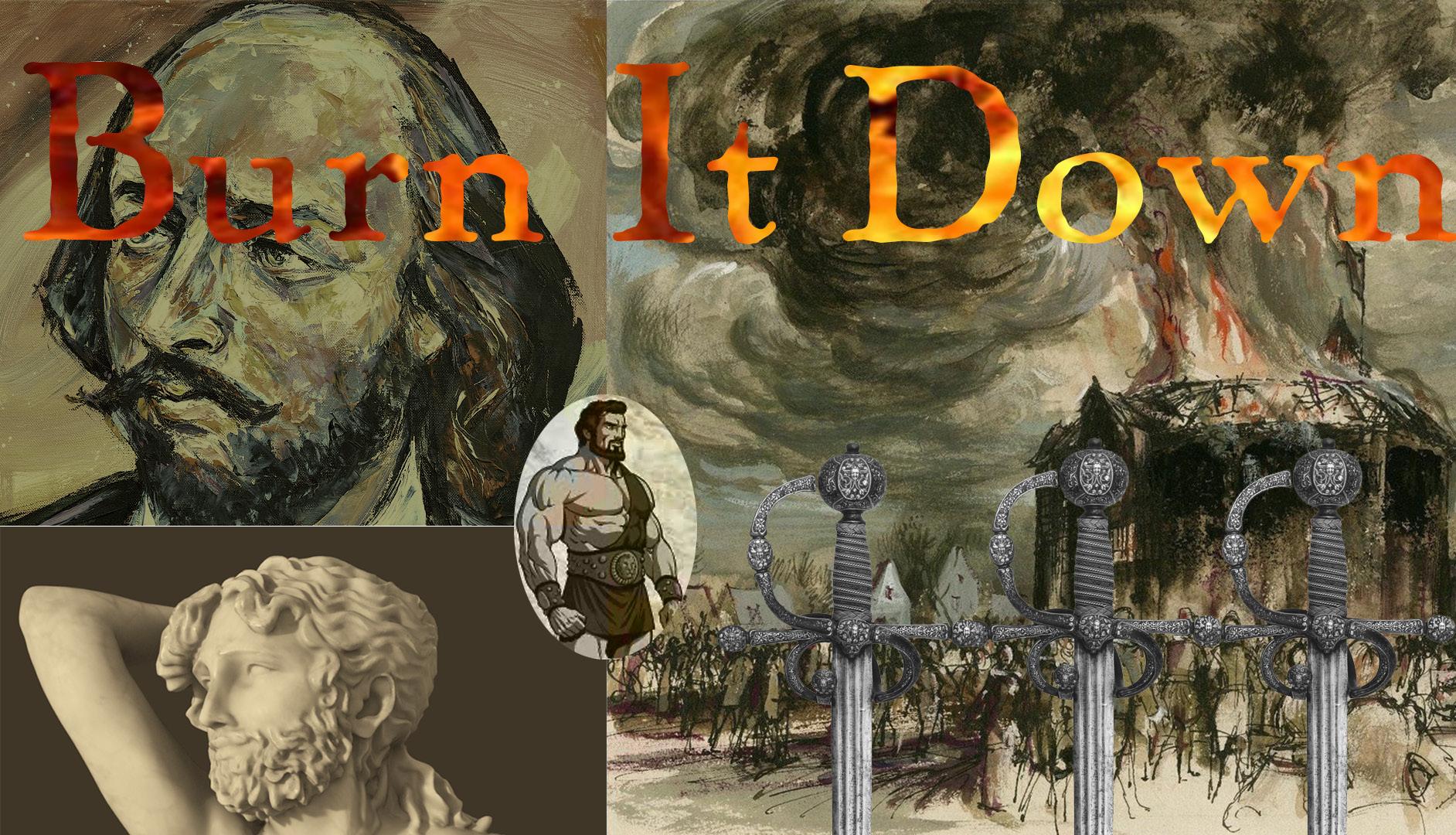 Burn it down is set in 1600s London during the early years of William Shakespeare. In that time historians cannot find a record of his life before he became the famous playwright we know today. This film is a fictional hypothesis of what those years were like and how he came into fame. In that time many of the play houses of London were located along the Thames River. Before the playhouses performing wagons would visit Inn's with performers acting out religious scenes. In our world Shakespeare capitalizes on these performing wagons but with a twist. With his control of the museum near the Inn he creates a semi permanent performing area that would eventually transform into what looks like The Globe Theater.