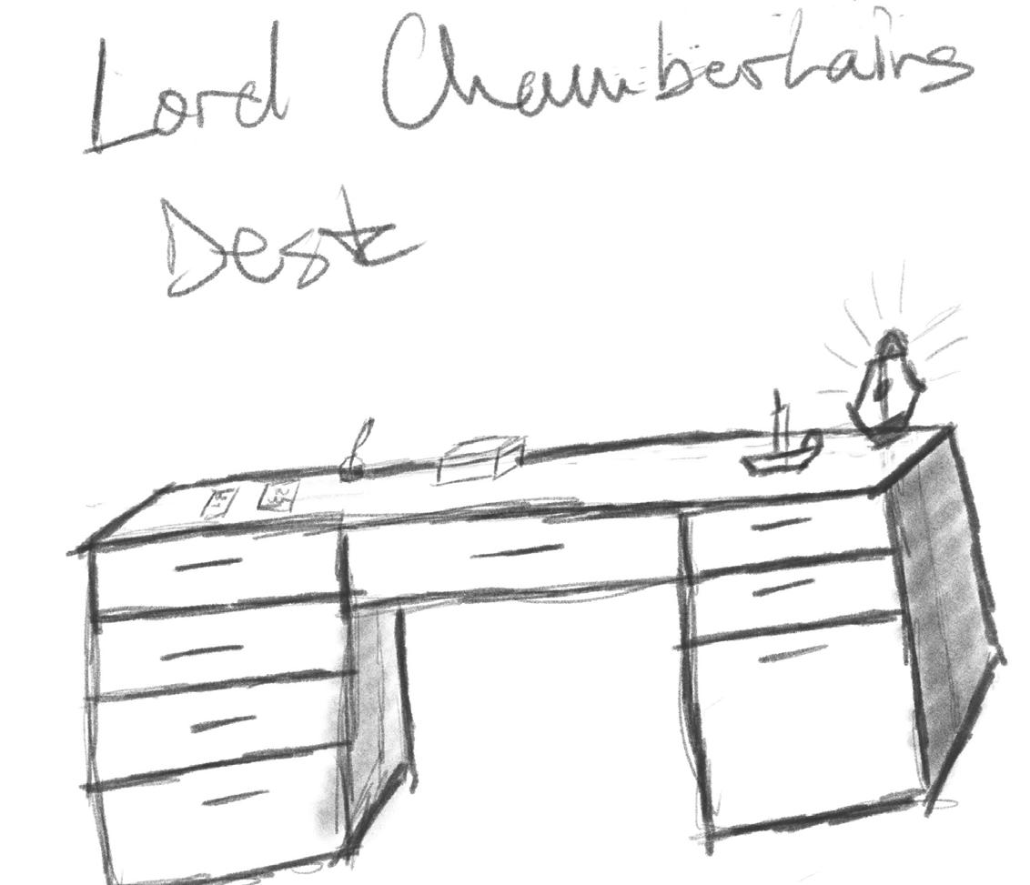 1600s London, The Globe Theater, Swords, 1600s London Costumes, Writing desk and instruments for writing.