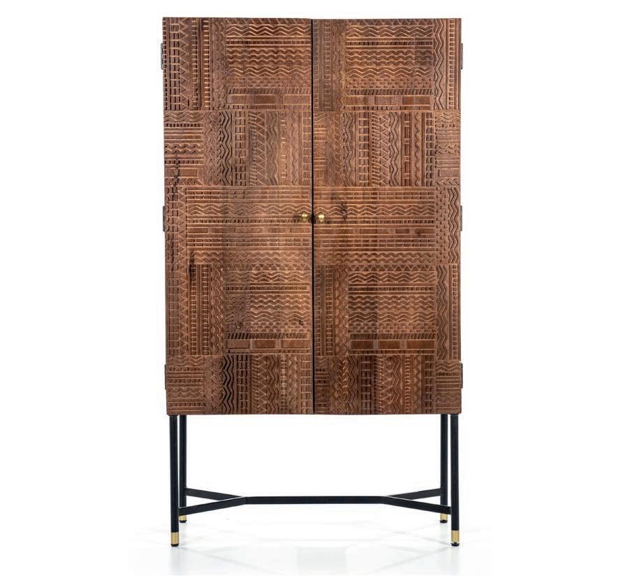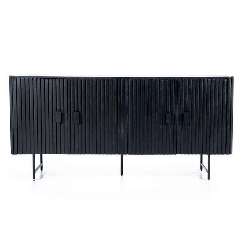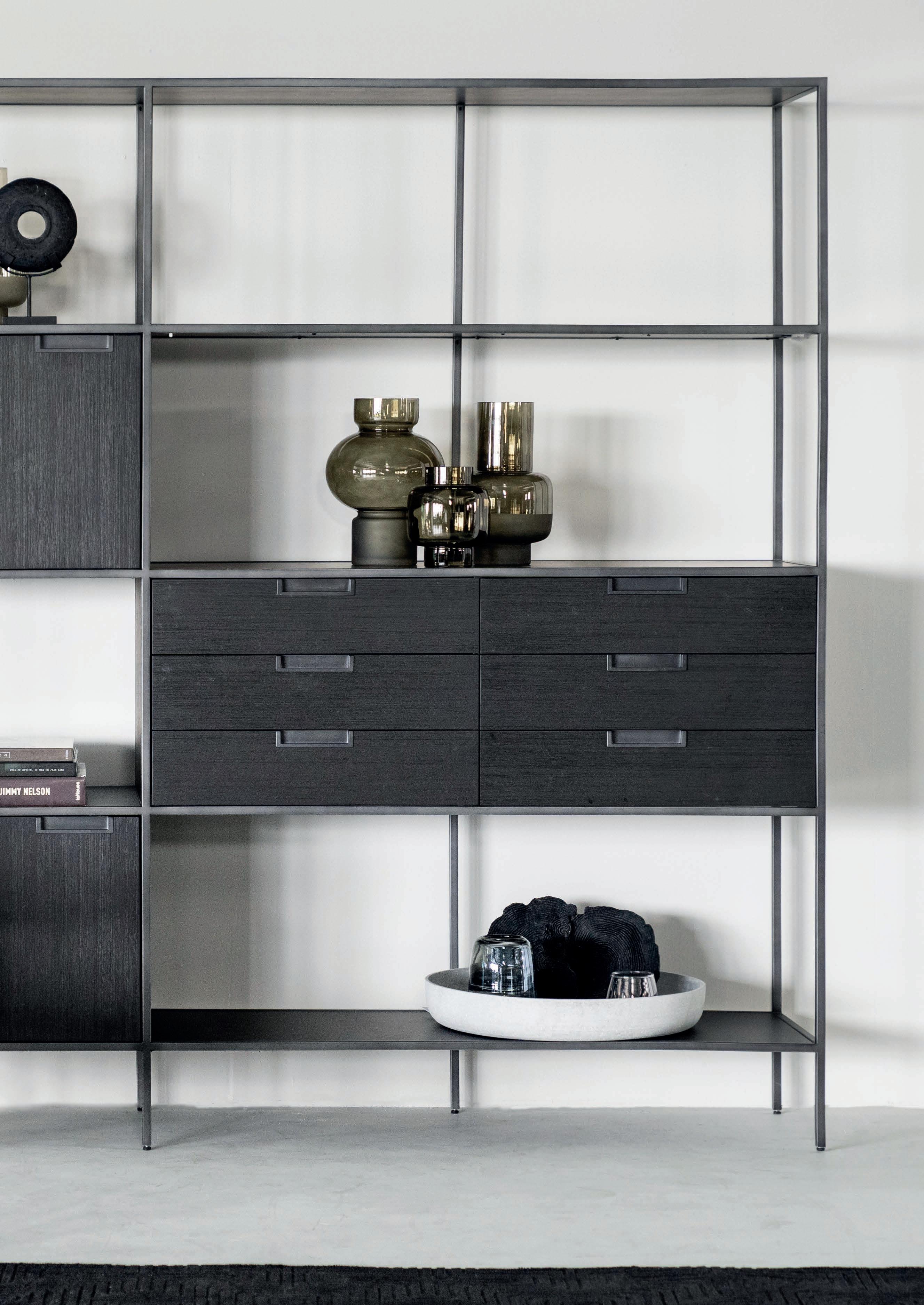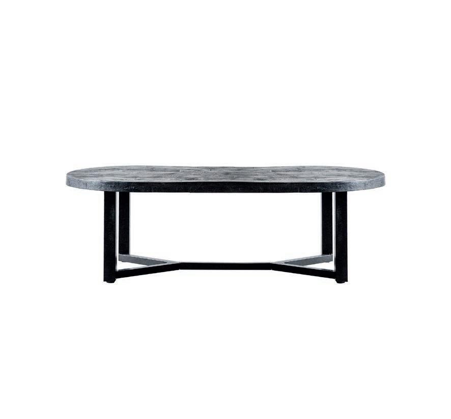 Afwerking: Gelakt hout, zwart gepoedercoat metaal