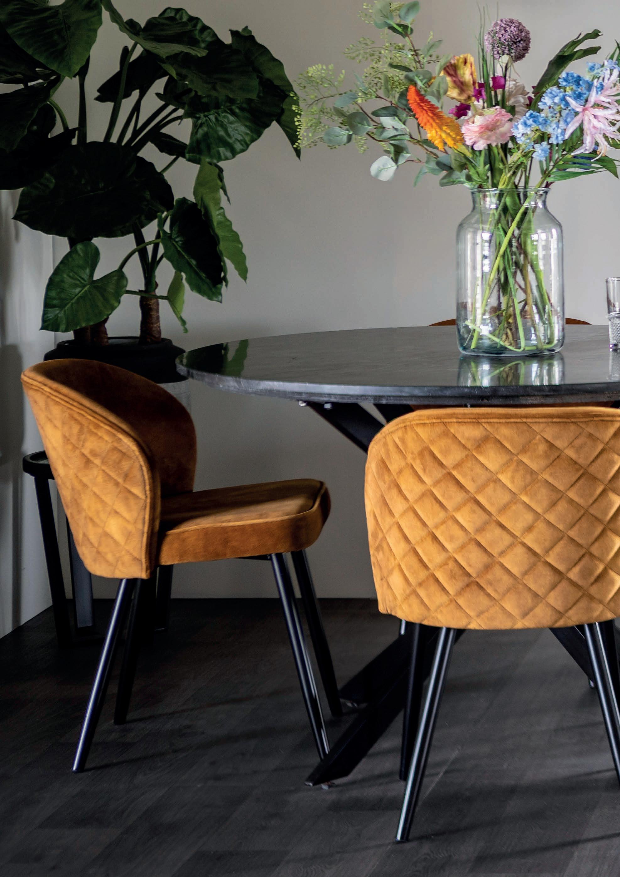 Bekleding: Adore, 100% polyester velours gebreid, 88.000 toeren, Lichtechtheid > 4, Vochtafstotend, Vlek werend Behandeling: Zwart gepoedercoat