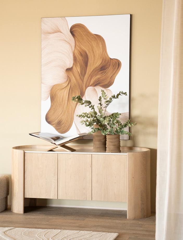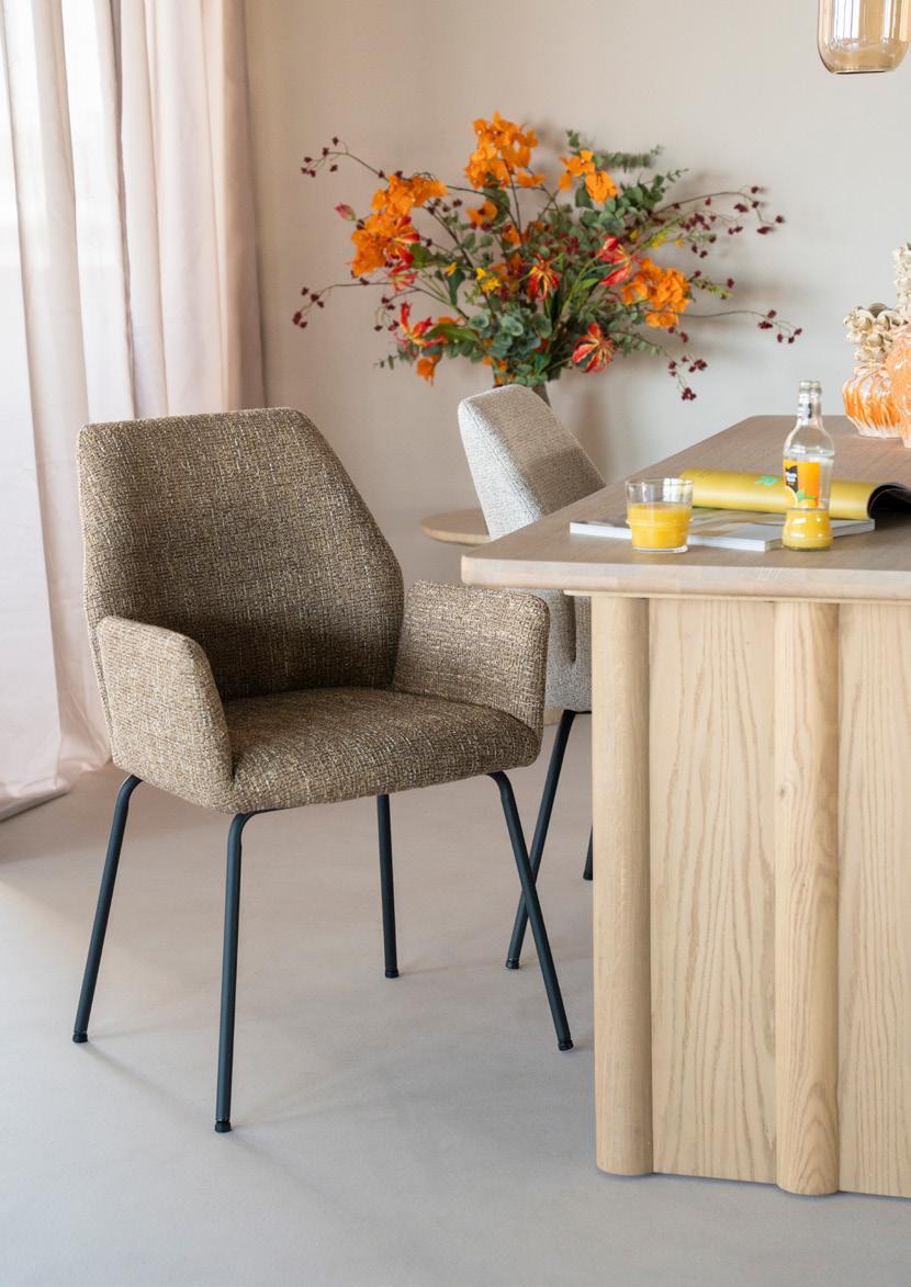 De trend van licht- en middenbruine houttinten ontwikkelt zich en zien we deze collectie dan ook nog meer voorbijkomen. Dit populaire, warme en tijdloze materiaal laat zich namelijk niet alleen nog meer terugzien in kasten en tafels maar zien we ook terugkomen in eetkamerstoelen en fauteuils.