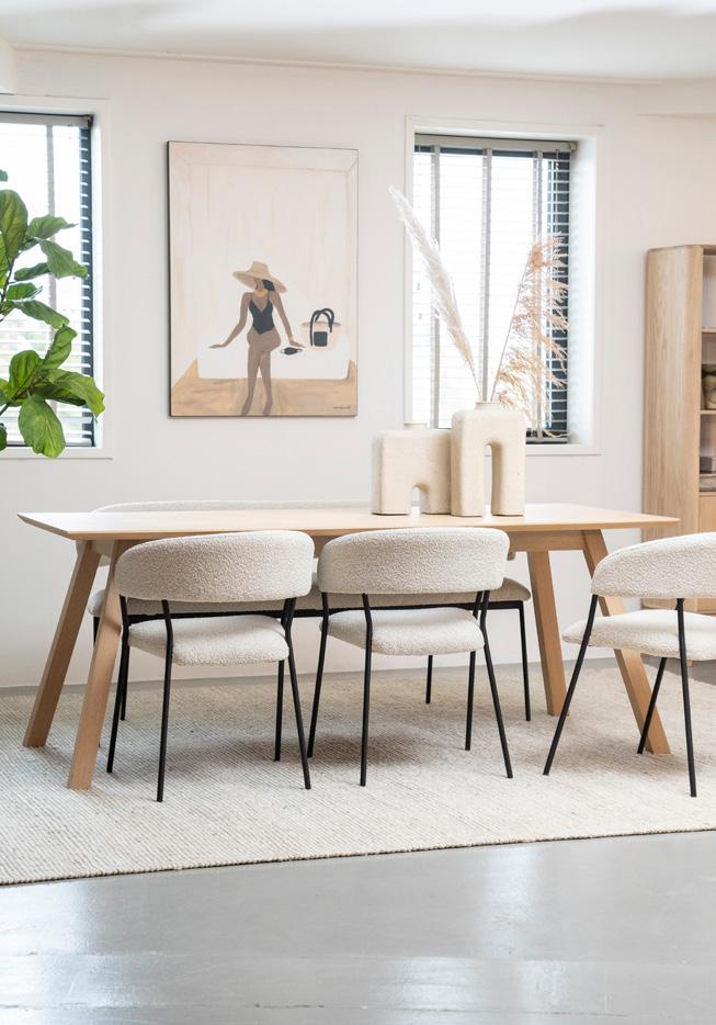 Avec la table à manger Alexander, vous décidez vous-même de la distance entre les pieds. Vous pouvez choisir entre deux distances lors de l’assemblage de la table.