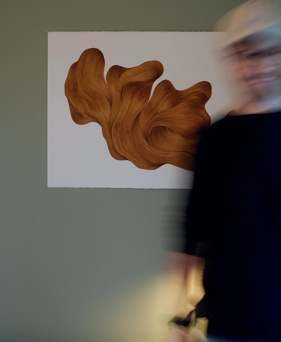 WIE: Jord Alma. WAT: Abstracte kunst, gemaakt met pen of marker. WAAR: Öxnevalla, Zweden. INSPIRATIE: “Mijn omgeving inspireert me, niet als letterlijke weergave, maar als echo van de organische vormen die mij fascineren.”