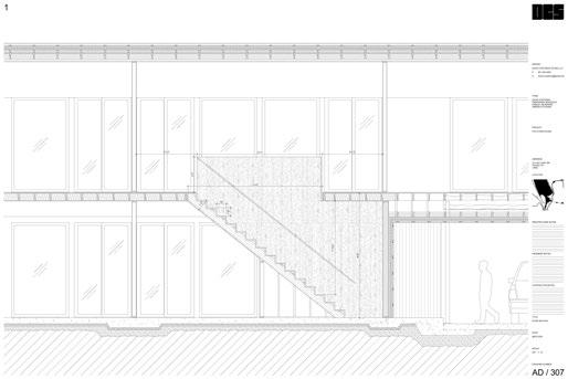 LOOP interrogates traditional approaches to library program in a couple of ways: building structure and book shelving are accomplished with the same system, the library’s plan takes the form of a perforated spiral wall, and floor elevation changes gradually. The result is a layered, porous plan.