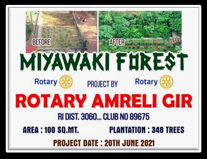 Club has developed 2 Miyawaki Forests of 100 Sq.Mtr. each at Deaf & Dumb School Amreli. This method used for tree plantation is inself a innovatie way and by this method we can plant more trees in a small area compared to our traditional planting method. While in this Miyawaki Forest method approx 350 trees can be planted in 100 Sq.Mt. area besides approx 80-100 trees by traditional method thus helping Rotarys new area of focus Environment. Among this, the plantation will be self sustainable after a period of 12 to 18 months where its takes a lot of efforts, precious care and time consuming in other methods. In this method we can select trees and plants depending on surrounding environment thus helping in creating a better place to live for birds.