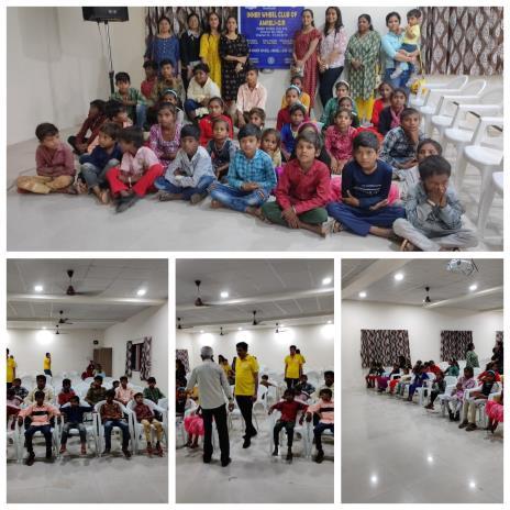 Club arranged a one day picnic for unprivileged children of backward areas. The childrens were taken to a school and were explained about the importance nog learning and enjoyed play area of school. After that they were visited to a devotional place were a short film on religion was projected highlighting awareness on worship and were given healthy meals.