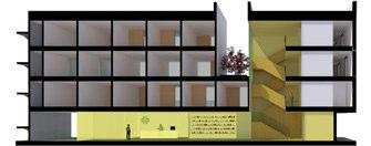 Si è ipotizzata una griglia strutturale con un passo ridotto, gli alloggi prevedono gli ambienti giorno, le camere da letto ed i servizi sovrapposti ad ogni piano evitando di collocare zona notte e zona giorno di due unità diverse in adiacenza.
