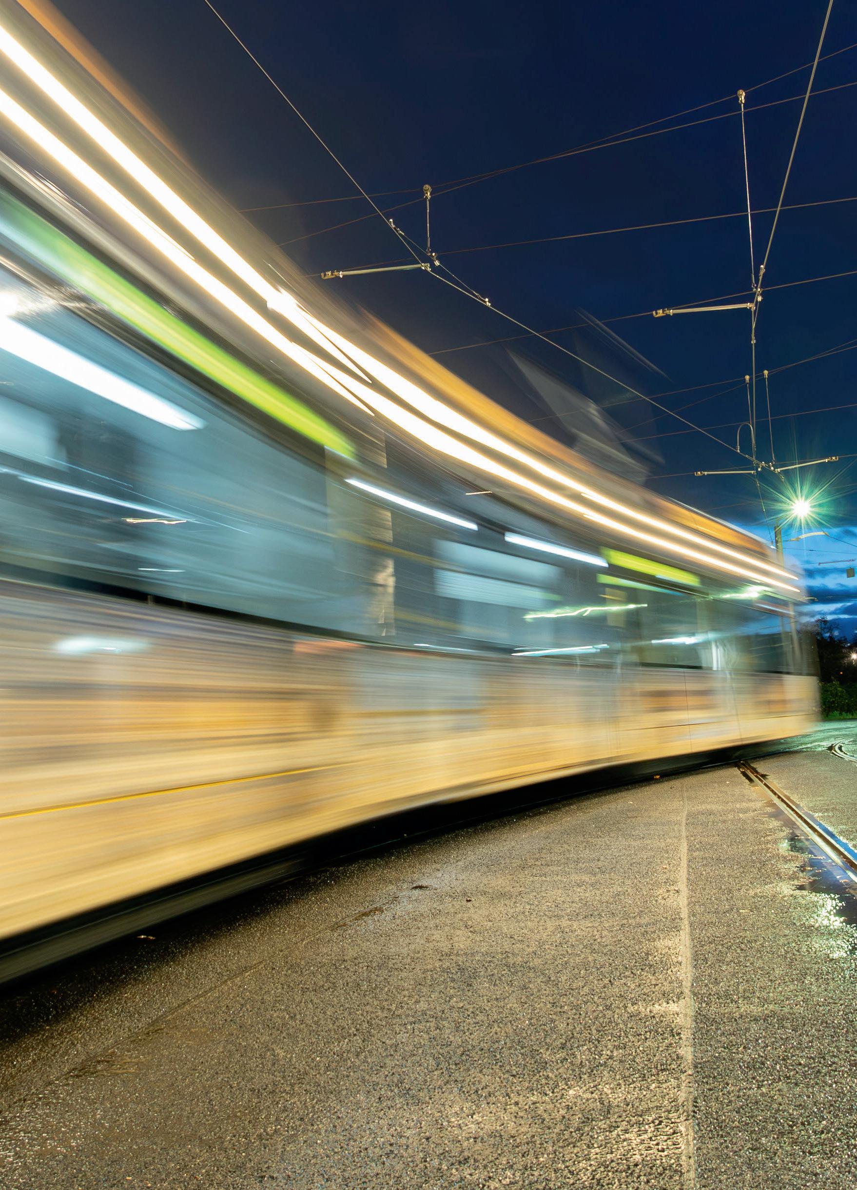 Wer mit unseren Bahnen und Bussen unterwegs ist, schützt das Klima und das immer effizienter. Unsere Fahrzeuge bringen Menschen nämlich nicht nur zuverlässig ans Ziel, sondern auch besonders umweltschonend. 2024 lag der Energieverbrauch pro Personenkilometer bei nur noch 0,117 Kilowattstunden. Das ist ein klarer Rückgang im Vergleich zu 0,176 kWh im Jahr 2020.