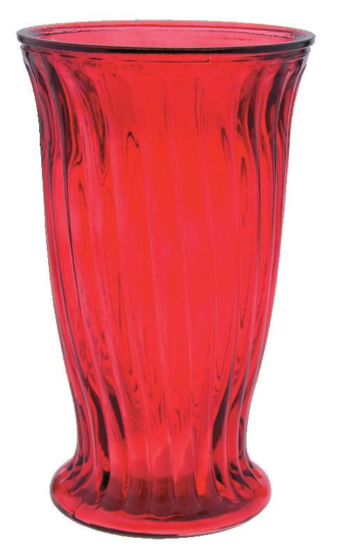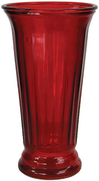 Ribbed Vase. Glass. 12"H, 6"opening. Red. Case of 4. S19599