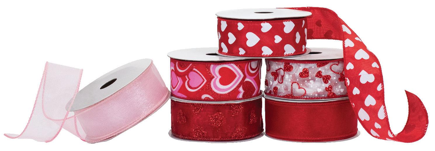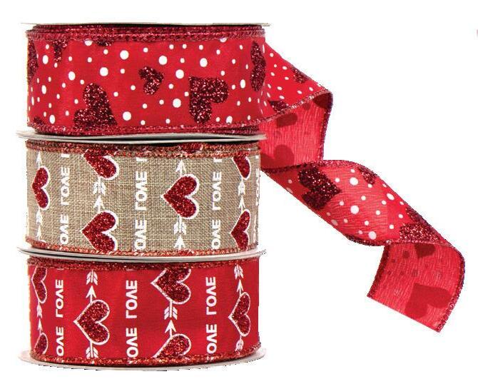 Valentine Ribbon Assortment. #9. Wired. Polyester. 10 yards. Assorted colors. S125Z