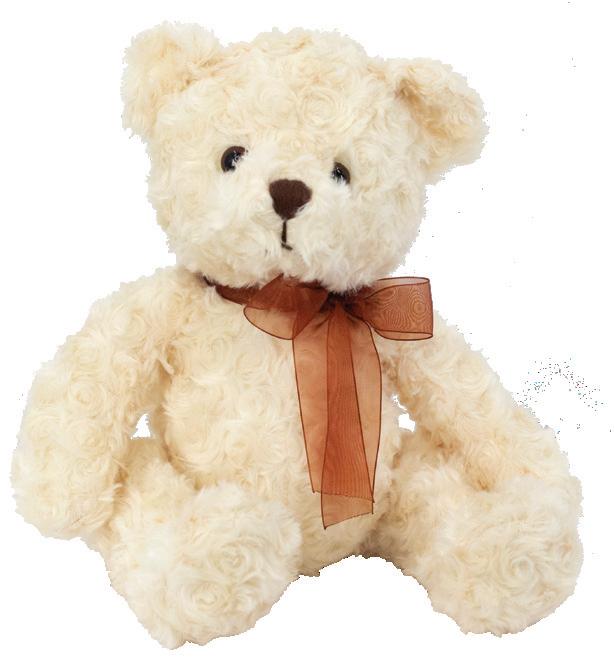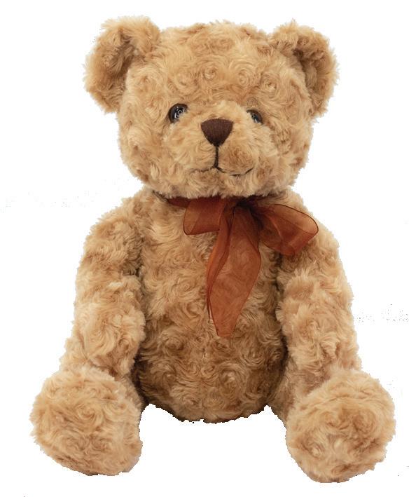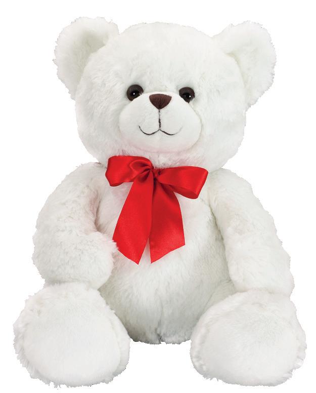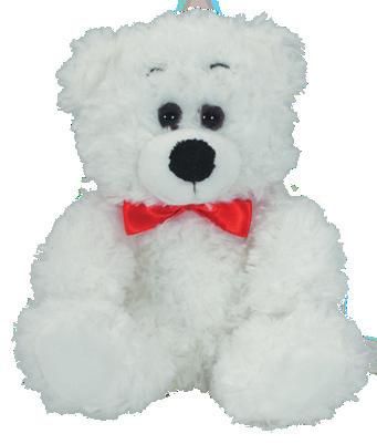 Puffy Bear with Bow. Plush. 16"H sitting with fixed legs. S23353 | Brown. S23352 | White.