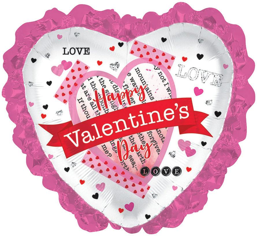 Happy Valentine’s Day Hearts Banner Balloon. Double-sided. Self-sealing. Mylar. 32"D. Multicolor. Pack of 5. S33546