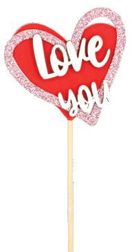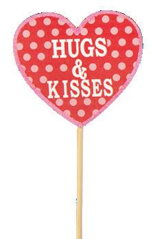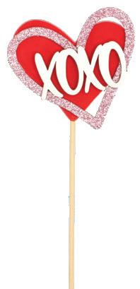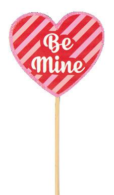Valentine’s Day Sentiment Heart Pick Assortment. Limited Quantities. Wood. Top: 21/2"H, 3"W. Overall: 21"H. Red, white and pink. Bag of 12. S26278