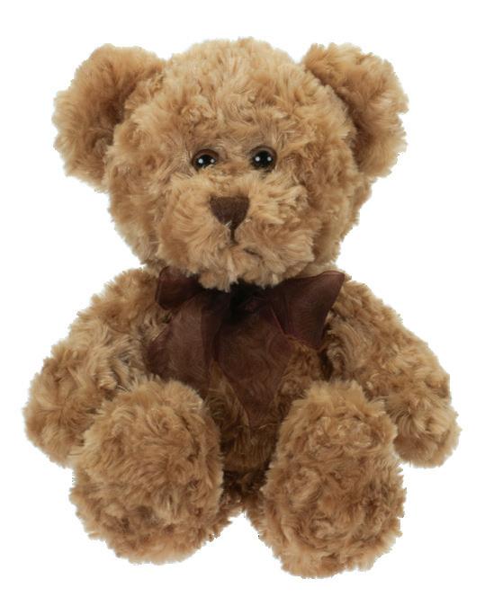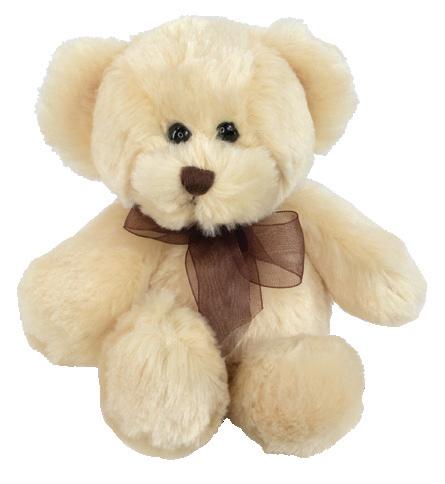 Tumbles Teddy Bear Assortment with Bow. Plush. 12"H sitting with fixed legs. Brown or cream. Random selection. S17527