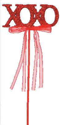 Valentine Sentiment Pick Assortment with Bow. Limited Quantities. Glittered. Wood. Top: 11/2"-2"H, 3"-31/2"W. Overall: 15"H. Red. Bag of 12. S28979