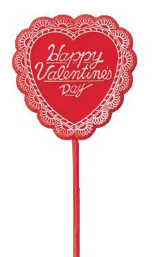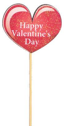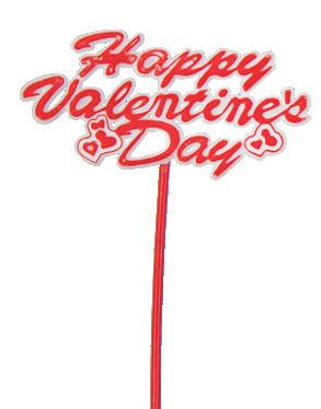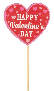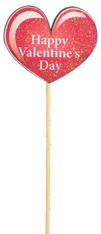 Happy Valentine’s Day Heart Pick. Limited Quantities. Glittered. Wood. Heart: 21/2"H, 3"W. Overall: 21"H. Red and pink. Bag of 12. S24280