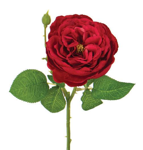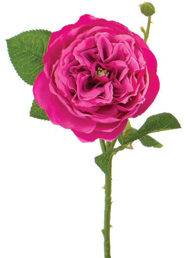 English Garden Rose Stem. Polyester. Bloom: 21/2"H, 3"W. Overall: 17"H. S26290 | Fuschia. S28879 | Pink. S26289 | Red.