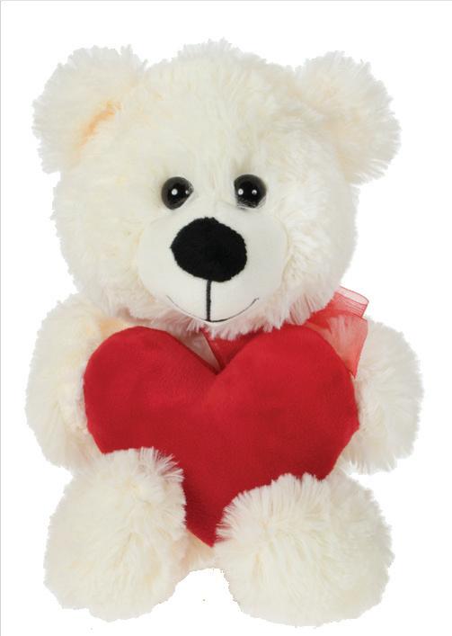 Hugging Bear with Heart Assortment. Plush. 7"H sitting with fixed legs. White or brown. Random selection. S32094