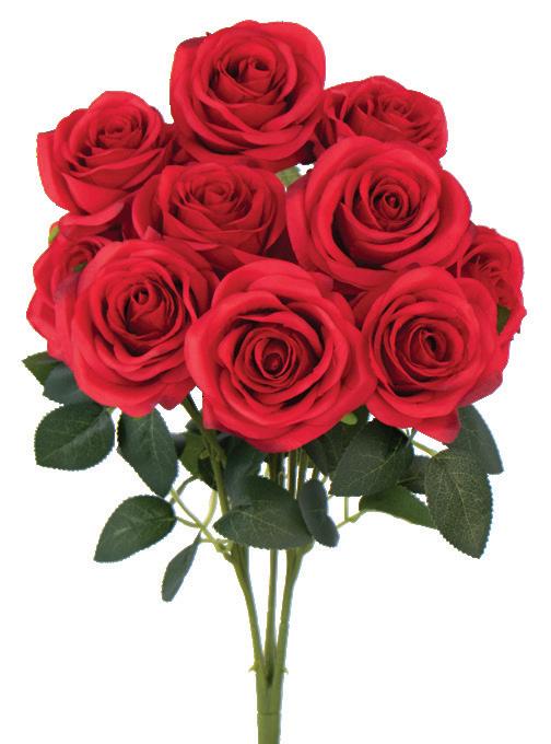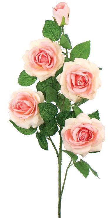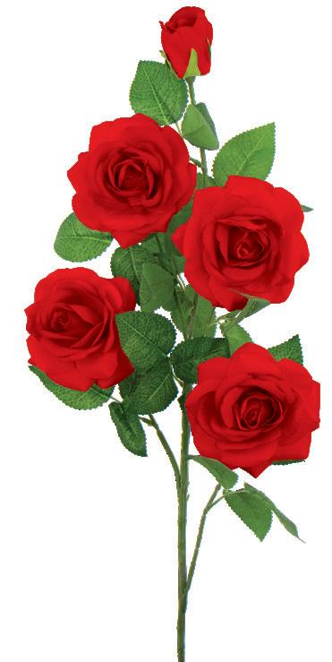Large Open Rose Spray. 5 blooms. Polyester. Blooms: 2"H, 5"W. Overall: 46"H, 10"W. S32092 | Pink. S32091 | Red.