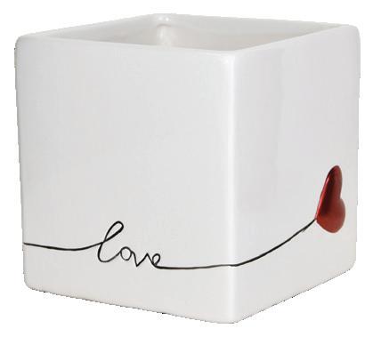 Heart Balloon Love Cube. Ceramic. 5"H, 43/4"opening. Red and white. S7368