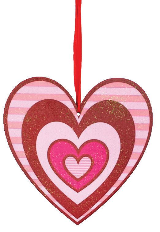 Hanging Heart Ornament Assortment. Glittered. Wood. Heart: 10"H, 11"W. Pink, purple or fuschia. Random selection. S28803 | $4.15 each.