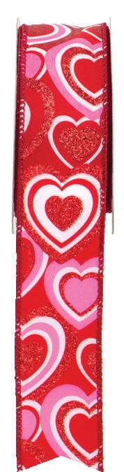 Stacked Hearts Ribbon. #9. Wired. Glittered. Polyester. 50 yards. Multicolor.