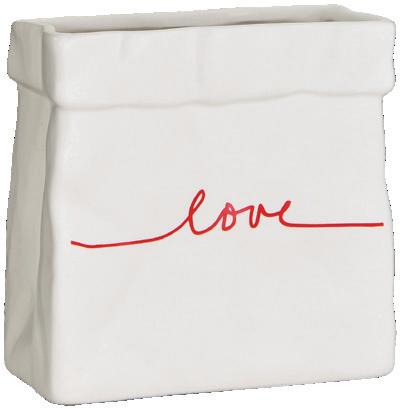 Love Bag Planter. Ceramic. 61/4"H, 51/2"W, 2"opening. Red and white. S20713