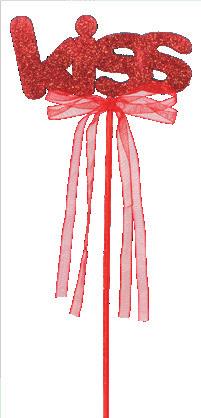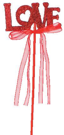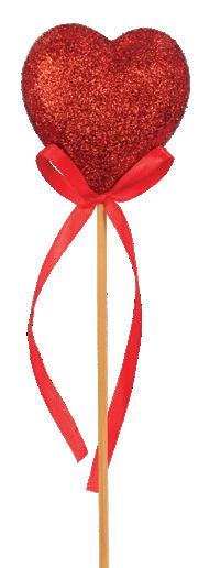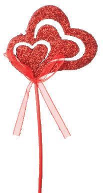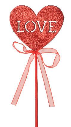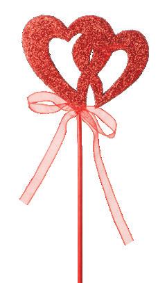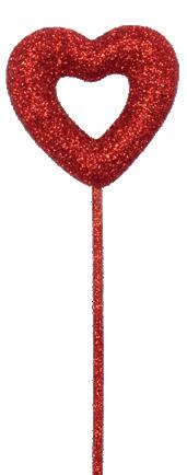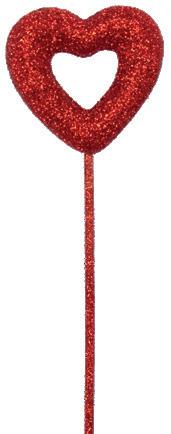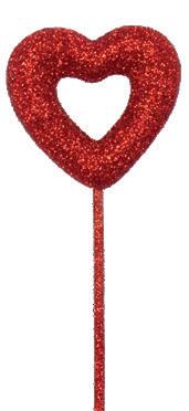 Open Heart Pick. Limited Quantities. Glittered. Styrofoam. Top: 2"H, 2"W. Overall: 17"H. Red. Pack of 12. S22204