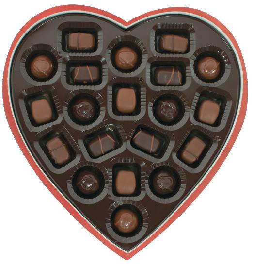Valentine Heart Chocolate Assortment. Milk and dark chocolate. 8oz. Package: 10"H, 101/2"W. Case of 6. S25101