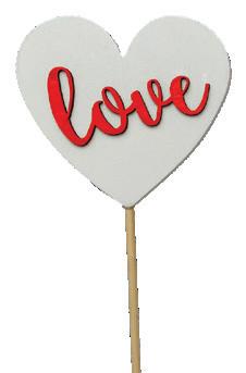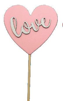 Love Heart Pick Assortment. Wood. Heart: 3"H, 3"W. Overall: 21"H. Assorted colors. Bag of 12. S26281