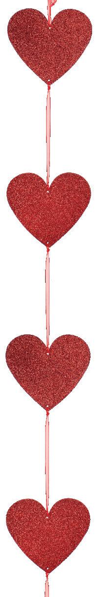 Heart Garland. Glittered. Wood. Hearts: 6"H, 51/2"W. Overall: 6’L. Red. S28802