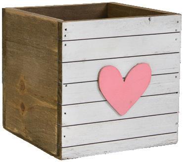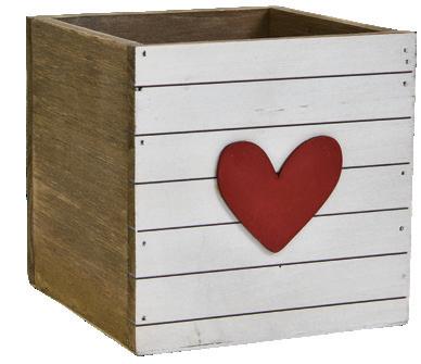 Heart Rectangle Planter. With hard liner. Wood. 4"H, 7"opening. Assorted colors. Bag of 2. S32516