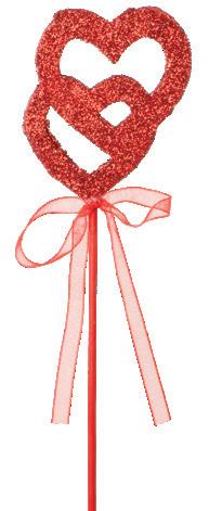 Heart with Bow Pick. Styrofoam. Heart: 21/2"H, 23/4"W. Overall: 21"H. Red. Bag of 12. S32083