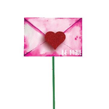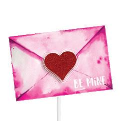 Be Mine Watercolor Pick. Wood. Top: 21⁄5"H, 31/4"W. Overall: 20"H. Multicolor. Bag of 10. S28419
