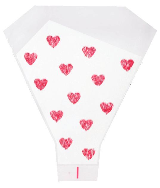 Pearl Heart Floral Sleeve. Not self-sealing. Polypropylene. Top: 5"W. Bottom: 11/4"W.