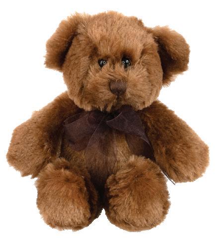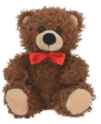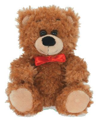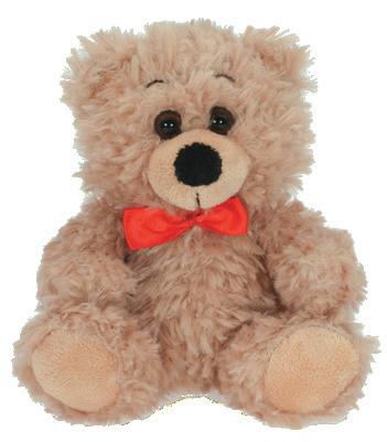 Fuzzy Bear Assortment with Bow. Plush. 7"H sitting with fixed legs. Dark brown, tan or white. Random selection. S22098