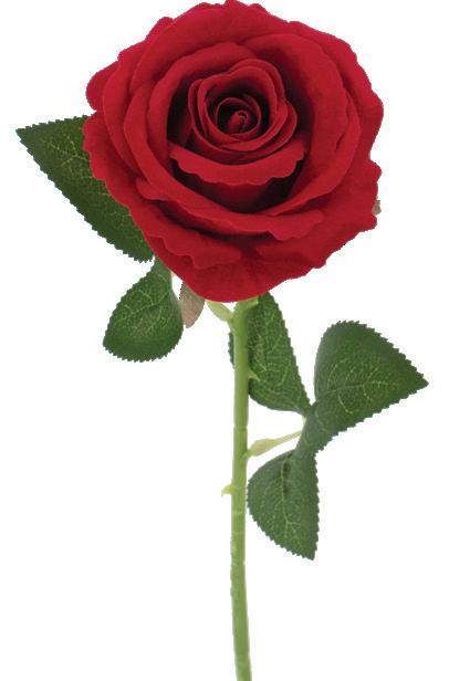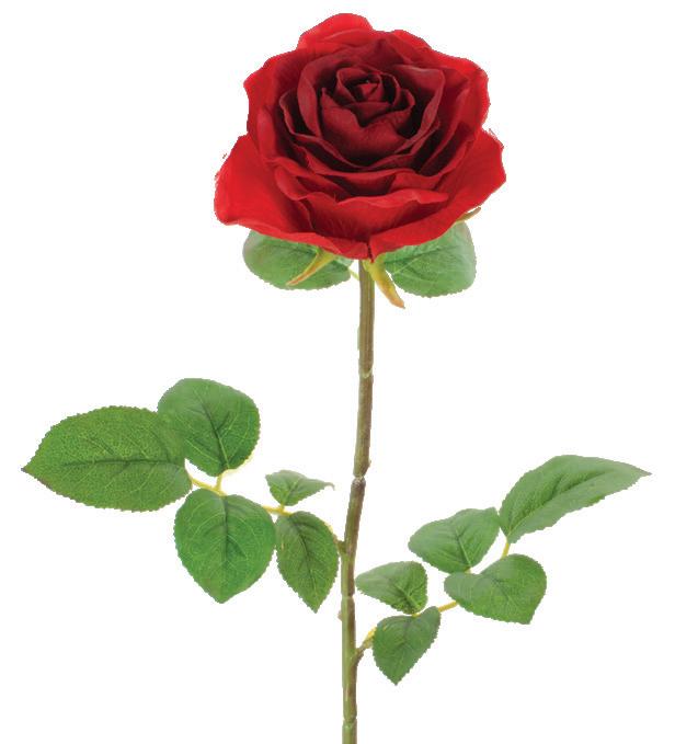 Velvet Rose Stem. Polyester. Bloom: 21/2"H, 31/2"W. Overall: 20"H. Red. S24484