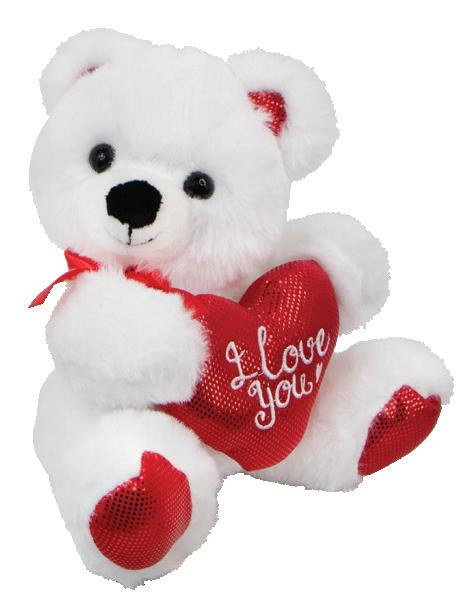 I Love You Bear Assortment. Plush. 8"H sitting with fixed legs. Brown or white. Random selection. S28582