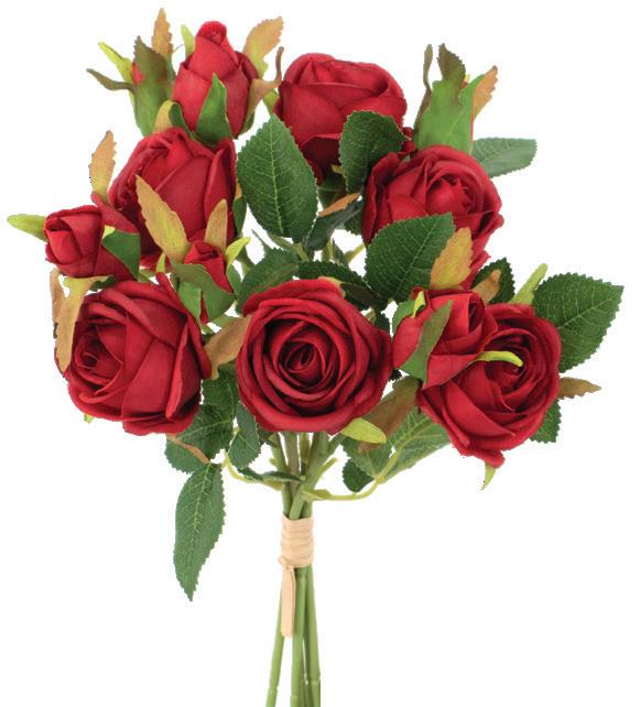 Rose Bush. Polyester. Top: 14"H, 10"W. Blooms: 31/2"W. Overall: 18"H. Red. S32088