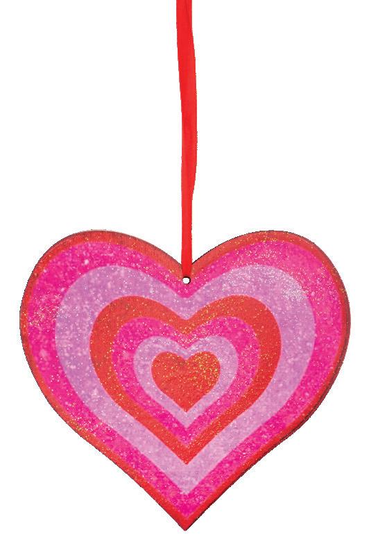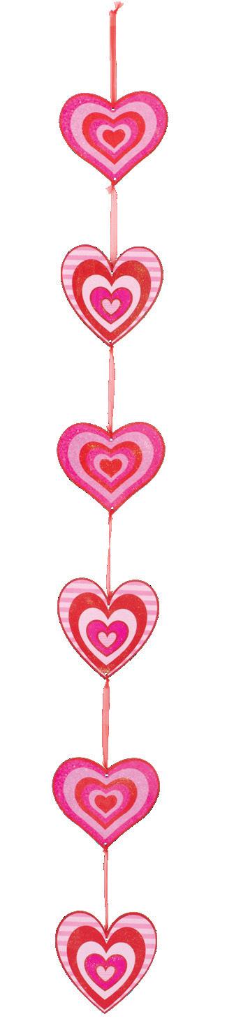 Dazzle Hanging Hearts. Limited Quantities. Wood. Heart: 61/4"H, 51/2"W. Overall: 6’L. Red and pink. S24025